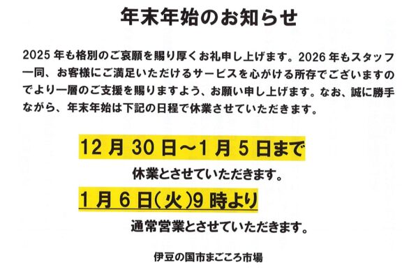 「年末年始のご案内」